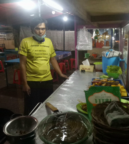 Saya usaha menggunakan gerobak dan tenda terpal.