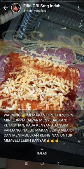 Home E-Katalog Kuliner Lunpia Chizcorn Mita Silviana KOTA SEMARANG JAWA TENGAH Whatsapp Lunpia isi jagung , sosis , keju dengan variasi saus dan toping Lihat Profil Rp. Rp.18 Kp Slamet 154 Rt 03 Rw 03 Kel. Karangturi Kec. Semarang Timur 08988166xxx [email protected] fojshop BAGIKAN