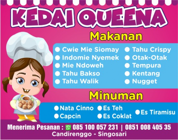 Home E-Katalog Kuliner Kedai Queena Evi Dwi Jayanti KABUPATEN MALANG JAWA TIMUR Whatsapp Melayani penjualan makanan dan minuman bisa delivery order by cod atau pemesanan by tlp atau wa Lihat Profil Rp. Rp.10.000 Jl pengayoman no 117 Rt 001 rw 004 Banjararum Singosari 088217814xxx [email protected] BAGIKAN