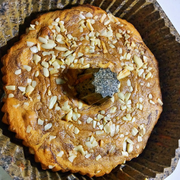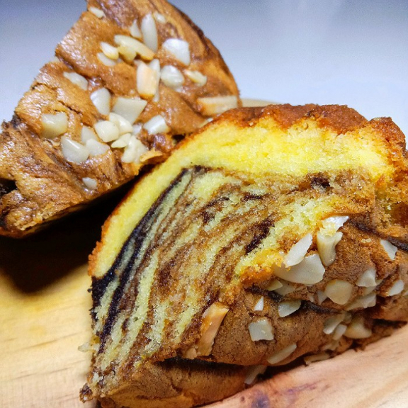 Bolu premium dengan tekstur yang padat namun lembut, aroma harum dan rasa yang lezat. Memakai wijsman butter dan bahan berkualitas lainnya. Rasa vanila coklat kopi, topping kacang kenari.