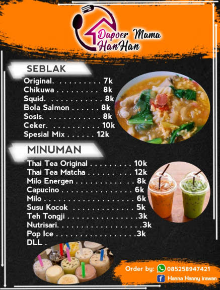 Home E-Katalog Kuliner Ayam geprek, seblak, dan minuman Hani Christin Wijaya KOTA MOJOKERTO JAWA TIMUR Whatsapp Ayam geprek mama hanhan mantap Lihat Profil Rp. Rp.0 Banjaranyar gang 1/7 Rt/Rw 003/001 Kelurahan wates Kecamatan Magersari Kota Mojokerto 085258947xxx [email protected] Hanna Hanny Irawan hanhanirawan BAGIKAN