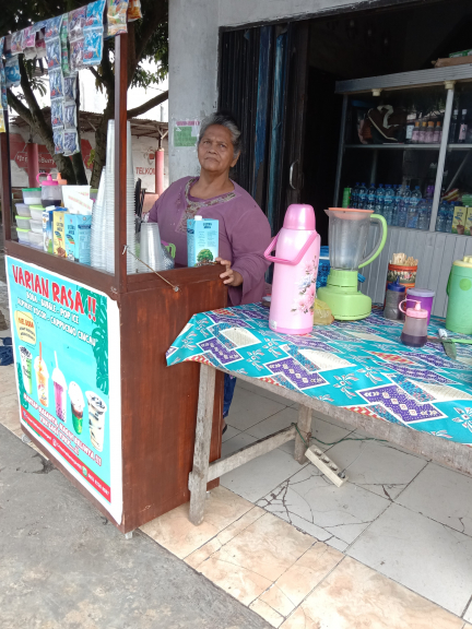 Saya Mariamin Br Sitepu, usia saya 67 tahun, saya memiliki Usaha minuman Boba dan Pop ice dengan banyak Varian rasa,