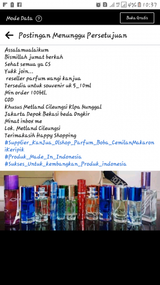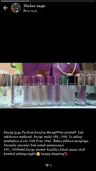Home E-Katalog Fashion & Aksesoris Parfum Olivia Jesinta Aritonang KABUPATEN BOGOR JAWA BARAT Whatsapp Ready order Parfum KanJua Wangi no Alcohol Bebas pilihan wangi dan kemasan Lihat Profil Rp. Rp.30 Kampung sawah 004/rw 006 cileungsi kidul Cileungsi jawa barat 081386892xxx [email protected] VQuennsha Ebby Jeart VQuennsha Ebby BAGIKAN