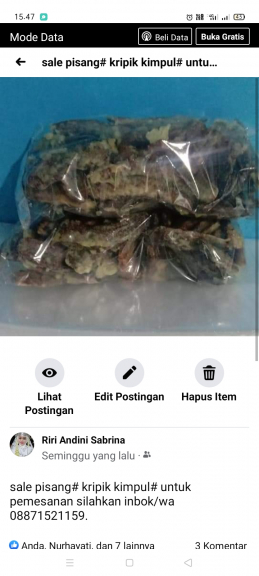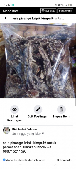 Home E-Katalog Kuliner Sale pisang jari Lilis istiyani KOTA DEPOK JAWA BARAT Whatsapp Perkenalkan saya lilis dari depok menjual pisang sale jari dan aneka snakbox Lihat Profil Rp. Rp.50 Kp perigi rt 01/07 kl: bedahan kc:sawangan depok jabar 08871521xxx [email protected] Ririandini sabrina Lilisistiyani BAGIKAN