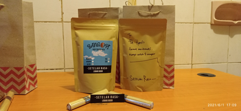 Home E-Katalog Kuliner BANGOPI Budi kurnia KABUPATEN BOGOR JAWA BARAT Whatsapp Kopi bubuk dalam kemasan 150 gram. Biji kopi Robusta dan Arabika yang diperoleh dari petani di daerah Bogor, kemudian di proses sampai menjadi bubuk oleh SetelahRasa dan diberi nama BANGOPI. Lihat Profil Rp. Rp.0 Jl. Lanbau, Kp. Liobaru RT 001/003, Ds. Sanja, Kec. Citeureup. Bogor 082114640xxx [email protected] - setelahrasa BAGIKAN