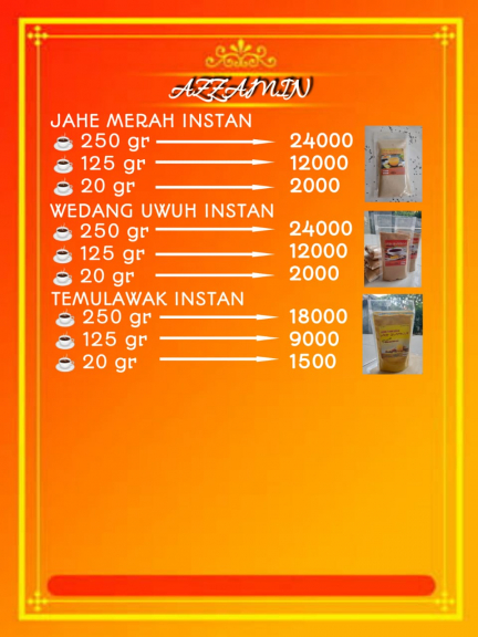 Home E-Katalog Kuliner Azzamin Lastak amin KABUPATEN SIDOARJO JAWA TIMUR Whatsapp Saat santai daya tahan tubuh lesu kurang semangat wedang temulawak azzamin rasa tepat jadi nikmat Lihat Profil Rp. Rp.12.000 Trosobo Gg.melati rt 03 rw 01 taman sidoarjo 08885282xxx [email protected] Omah wedang Az-azzamin Omahwedang_azzamin BAGIKAN