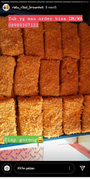 Home E-Katalog Kuliner Ratu risol brown hot Zacky Zeth Zubaedi KOTA PALEMBANG SUMATERA SELATAN Whatsapp Rasa unik, dengan isi ayam, sapi, makaroni dan bumbu2 Lihat Profil Rp. Rp.2.000 jln Kadir TKR lorong keluarga RT35 RW05 kelurahan gandus 08987528xxx [email protected] Ratzack BAGIKAN