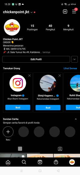 Home E-Katalog Kuliner CHICKEN POINT JKT ANGGORO MAHBULLOH KOTA JAKARTA BARAT DKI JAKARTA Whatsapp Saya mengikuti bantuan usaha ini untuk membeli perlengkapan usaha yang saya lagi jalanin. Lihat Profil Rp. Rp.18.000 KP. GOMBOL PAYA RT.001/0013, KALIDERES, JAKARTA BARAT. 082119544xxx [email protected] @chickenpoint.jkt BAGIKAN