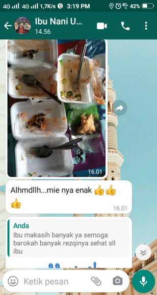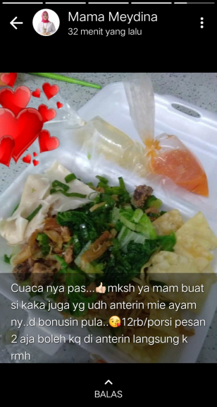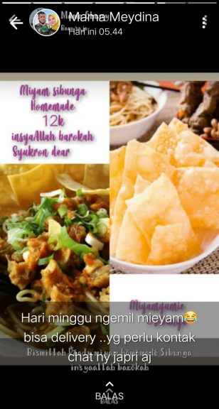 Home E-Katalog Kuliner Mie ayam homemade Achmad Hudori KOTA JAKARTA TIMUR DKI JAKARTA Whatsapp Mie sehat di buat sendiri , dari bahan yang aman, dan sehat tanpa bahan pengawet Lihat Profil Rp. Rp.12.000 Jln h. Jirin RT. 05/ RW .007 no.53g kelurahan lubang buaya kecamatan Cipayung Jakarta timur 13810 081990871xxx [email protected] BAGIKAN