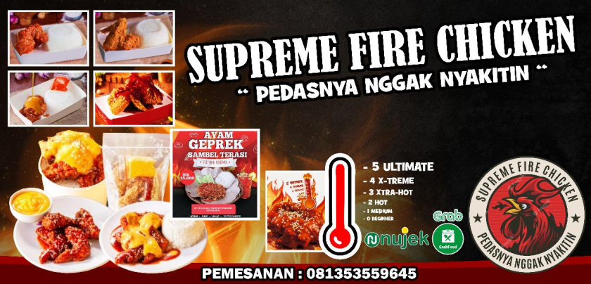 Home E-Katalog Kuliner Supreme Fire Chiken Christian adhi nugraha KOTA BONTANG KALIMANTAN TIMUR Whatsapp Ayam gurih ceispy Pedasnya gak nyakitin Lihat Profil Rp. Rp.20 Jalan jendral sudirman Rt26, bekas masjid alhijrah satu toko sama perdana cell Bontang selatan kalimantan timur 081353559xxx [email protected] AlletaShop Tidak punya BAGIKAN