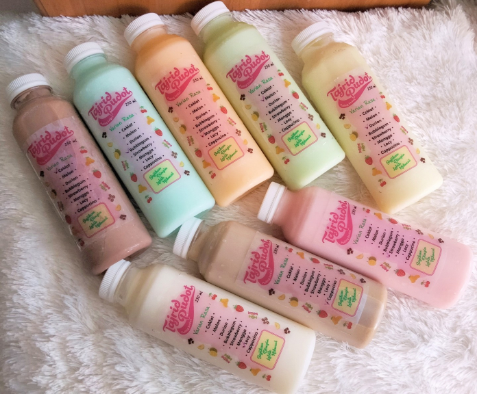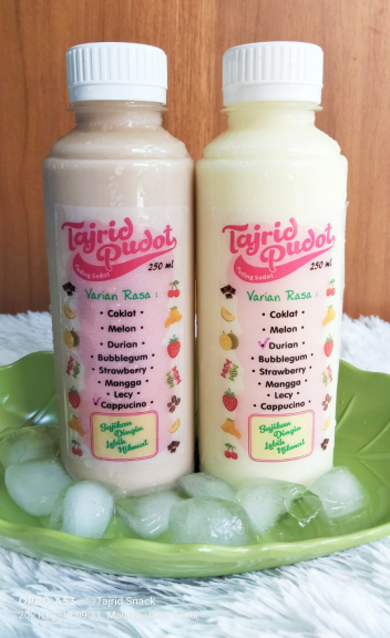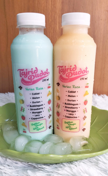 Pudot atau Puding Sedot, yang dikemas dalam botol ukuran 250ml, dengan varian rasa Lecy, Mangga, Durian, Melon, Coklat, Cappucino, Strawberry, dan Permen Karet.