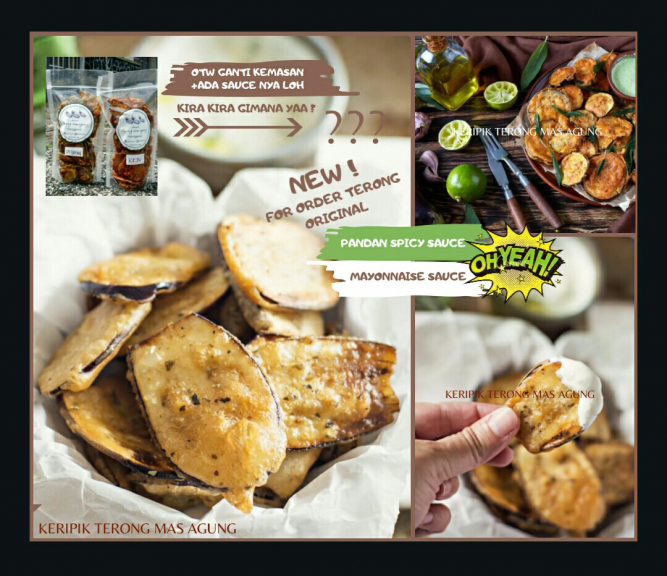 Keripik Terong Mas Agung adalah cemilan berbahan baku Terong ungu yang di olah menjadi keripik melalui proses teknologi tepat guna (Semua tahapan proses produksi yang dilakukan menggunakan mesin sesuai dengan kegunaannya) yang membuat proses produksi menjadi lebih efektif dan efisien.