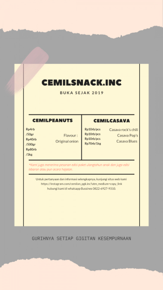 CEMILPEANUTS suatu product snack makanan ringan berbahan kacang non-botani yang memiliki protein tinggi dan manfaat untuk semua orang .rasakan kenikmatan gurihnya CEMILPEANUTS menemani saat bersantai dengan orang terdekatmu.info lebih lanjut hub via whatsapp bussines 0822-6927-9310