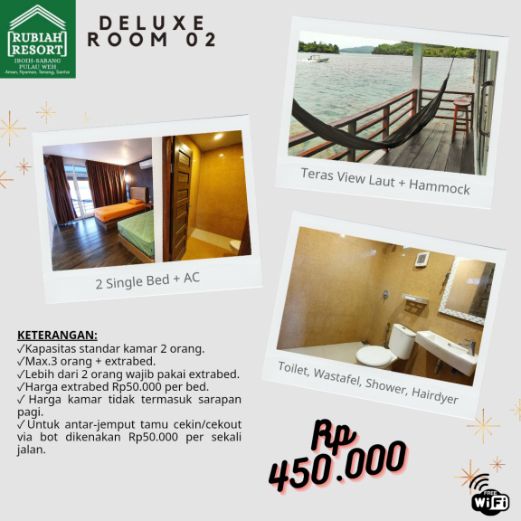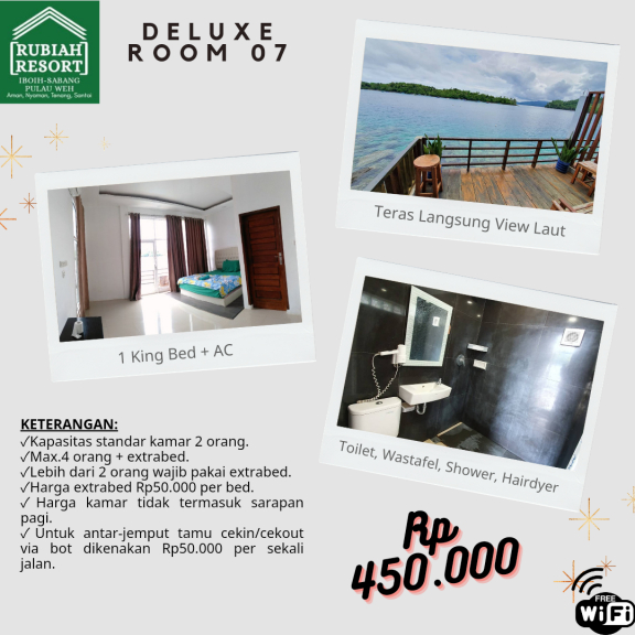 Home E-Katalog Jasa Akomodasi/Penginapan Iskandar KOTA SABANG ACEH Whatsapp Rubiah Resort merupakan usaha pariwisata dibidang penyediaan akomodasi/penginapan dan menyediakan paket wisata sabang. Berada di lokasi desa wisata iboih kota sabang. Lihat Profil Rp. Rp.450.000 Jln. Pantai Iboih 082164143xxx [email protected] BAGIKAN