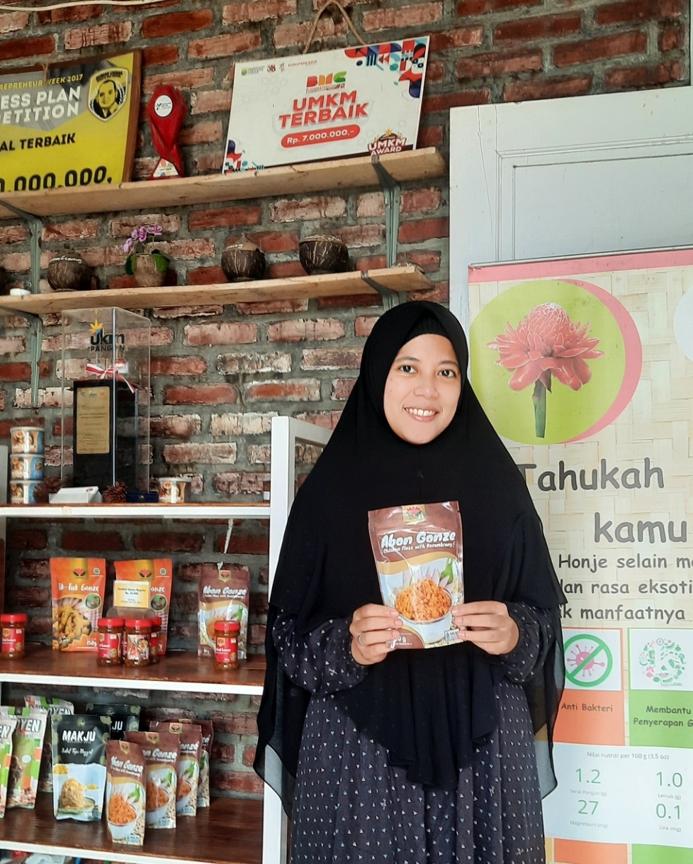 Home E-Katalog Kuliner GONZE Dini Mayangsari KABUPATEN CIANJUR JAWA BARAT Whatsapp merupakan produk olahan honje/kecombrang. Beberapa produknya antara lain : sambal, abon, snack, dll Lihat Profil Rp. Rp.35.000 Puri asri limbangan 08568528xxx BAGIKAN