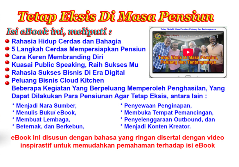Home E-Katalog Buku dan Alat Tulis eBook Tetap Eksis Di Masa Pensiun SLAMET, M.Pd KOTA JAKARTA BARAT DKI JAKARTA Whatsapp Siapapun yang bekerja dengan pihak lain, entah itu ASN, pegawai swasta, atau wiraswasta, pasti akan mengalami pensiun. Anda ingin tetap eksis dan Bahagia di masa pensiun?, miliki eBook ini ! Lihat Profil Rp. Rp.50.000 Jln Strategi Raya Blok M1 No. 3 Joglo Jakarta Barat 081293957xxx [email protected] BAGIKAN