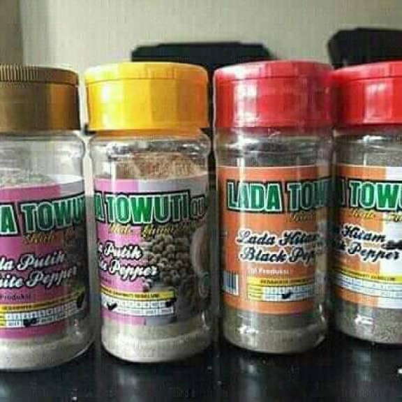 Lada Towutiqu mempunyai 2 varian yakni lada putih dan lada hitam.. Lada Putih khas dgn rasa pedisnya yg menusuk, Lada hitam dgn aroma khas yg membuat masakan jadi lezaaat, kedua varian tersebut berasal dari lada dgn kualitas premium serta dari perkebunan organik yg dikelola dgn sistem pemberdayaan perempuan serta perkebunan yg bebas dari hutan lindung... Netto 40 gram
