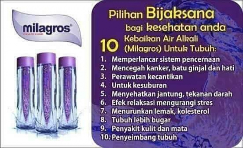 Home E-Katalog Kesehatan & Kecantikan Milagros Awik Susanti KABUPATEN LUMAJANG JAWA TIMUR Whatsapp Milagros air yg mengandung alkali yg dikemas langsung dari sumber air bukan buatan mesin Lihat Profil Rp. Rp.35 Dsn Krajan 2 rt 22 rw 07 banyuputih lor 085257576xxx [email protected] susantiawik Susantiawik BAGIKAN