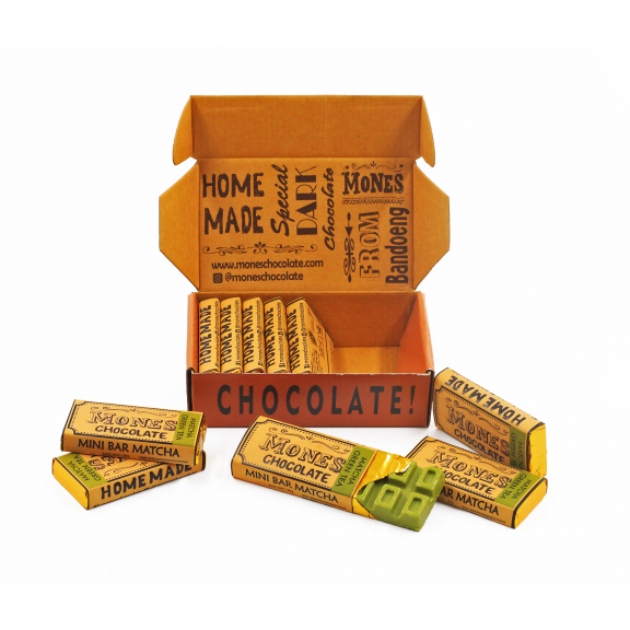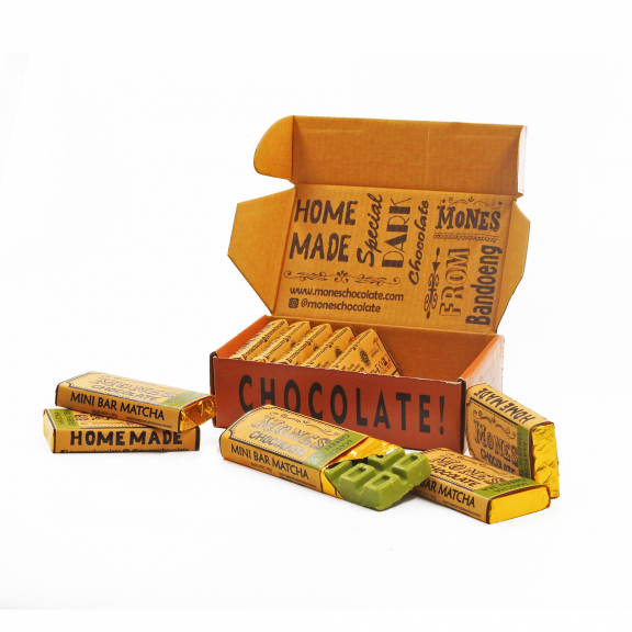 Feel good with the great Mini Bar Matcha! Nikmati segala kebaikan teh hijau di balik kelezatan dan gurihnya biskuit keju. Mengandung Greentea Chocolate premium dengan 45 – 50p kakao asli, biskuit keju yang crunchy, serta rasa Greentea yang unik, berpadu di lidah Anda, menciptakan cita rasa tersendiri yang akan meningkatkan mood. Rasakan kelezatan cokelat asli nan lezat dalam kemasan bercorak vintage yang unik penuh warna menambah kesan ekslusif. Tanpa bahan pengawet dan pemanis buatan. Selain menjadi camilan sehat, Cokelat adalah hadiah terindah untuk orang tersayang, keluarga, rekan kerja, kolega juga relasi dimana saja.