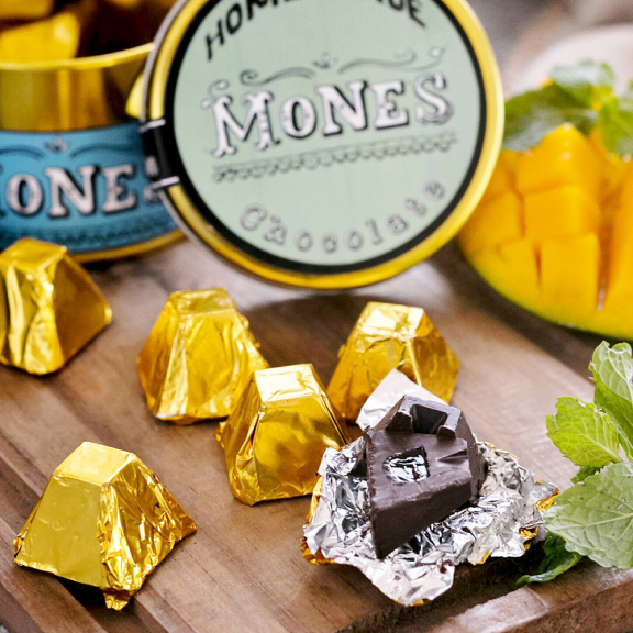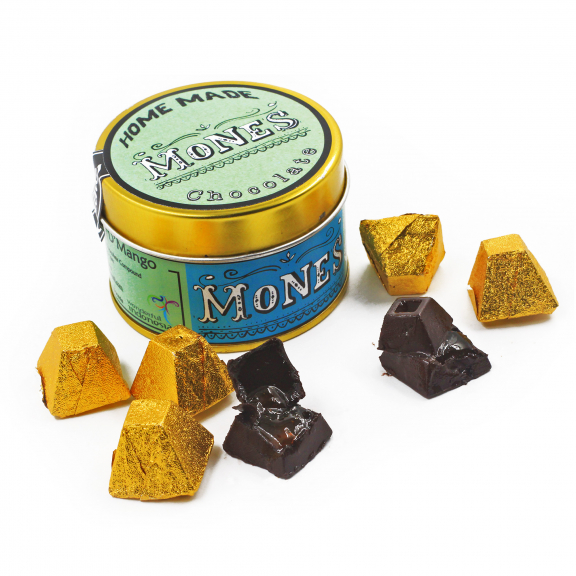 Taste some sweet and sour of mango in every Mones Chocolate Choco D’Mango chips. Perpaduan rasa asam manis dari selai mangga berpadu dengan manis legitnya Dark Cokelat kualitas premium yang mengandung 45-50p kakao asli, hmm… sensasi rasa yang menyenangkan di lidah Anda, bukan? Rasakan kelezatan cokelat asli nan lezat dalam kemasan bercorak vintage yang unik penuh warna menambah kesan ekslusif. Tanpa bahan pengawet dan pemanis buatan. Selain menjadi camilan sehat, Cokelat adalah hadiah terindah untuk orang tersayang, keluarga, rekan kerja, kolega juga relasi dimana saja.