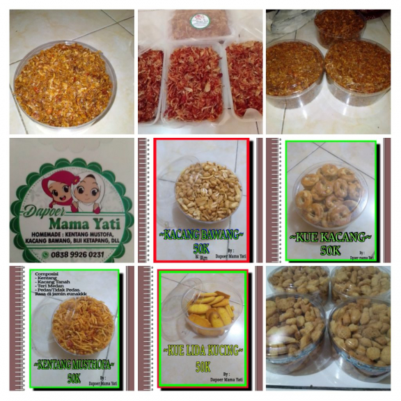 Home E-Katalog Kuliner Dapoer Mama Yati Sigiet Pramuji KABUPATEN BEKASI JAWA BARAT Whatsapp Cemilan sehat berupa kentang mustofa,kacang bawang geng,udang rebon pedas dll Lihat Profil Rp. Rp.15 Kp babakan desa satriajaya rt 006 rw 02 no 25 kabupaten bekasi 081249877xxx [email protected] BAGIKAN