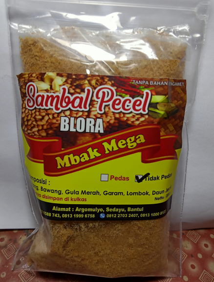 Home E-Katalog Kuliner Sambel Pecel Bla Mbak Mega Tak Pedas HERY SUSANTO KABUPATEN BANTUL DI YOGYAKARTA Whatsapp Sambel Pecel Bla Mbak Mega tak pedas, 200 gram, teksturnya lembut mudah disajikan ditabur atau dicampur dengan air secukupnya Lihat Profil Rp. Rp.16.000 Jl. Pedes Godean, Srontakan RT 001, Argomulyo 081319996xxx [email protected] www.facebook.com/sambelpecelblambakmega www.instagram.com/sambelpecelblambakmega BAGIKAN