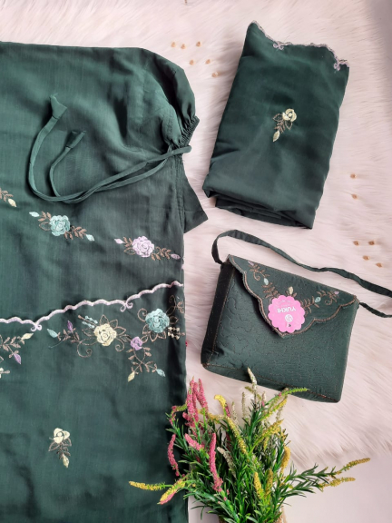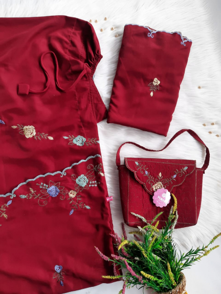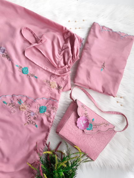 Mukena traveling Bordir manual dengan material bahan kain katun.