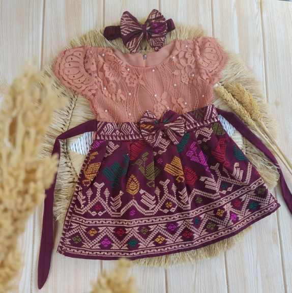 Bahan dres brokat dilapisi furing jadi adem dipakai Untuk bawahanya bahan bordir nuansa etnik bali, Untuk usia 0-12 bulan