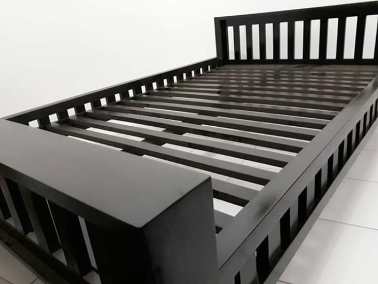 Dipan Full Kayu Solid Mahoni Fin.Ocre + Vernish, Uk. 120x200 cm. Tanpa Paku. Bisa Bongkar Pasang. Pemesanan 2 Minggu.