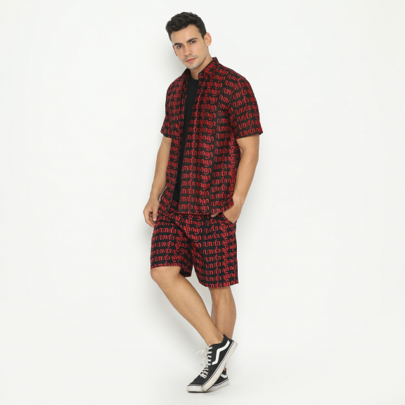 Setelan Kemeja Batik Aksara Jawa, Kemeja Lengan Pendek, Celana Pendek dan Masker Kain