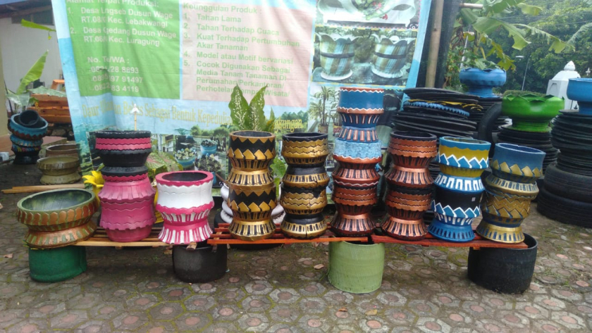 Pot bahan karet pasti unik menarik, berkualitas, model variasi banyak, ukuran disesuaikan kebutuhan tanaman. Membeli produk ini berarti konsumen membantu pemanfaatan limbah ban kendaraan. Kendaraan membuang Karbondioksida, kita menanam tanaman menambah oksigen. Harga bervariasi pasti terjangkau. Pot cocok untuk didalam atau diluar ruangan. Dapat ditempatkan di perumahan, perkantoran,pertanian, perkebunan dll.