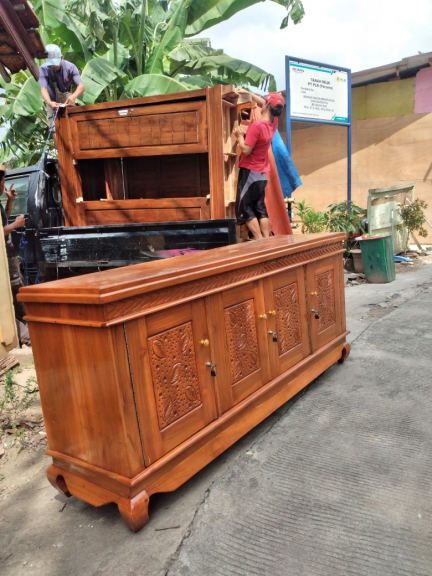 Kami dari pengrajin kayu jati asli perhutani Ingin memasarkan hasil kerajinan kami Yaitu : buffet datar rata -Bahan full keseluruhan pake kayu jati asli -panjang 180 x lebar 45 x tinggi 80 -barang 100p sesuai seperti pesanan (Kalau barang tidak sesuai pesanan,jaminantolak ditempat) -gratis ongkos kirim wilayah jabodetabek (Pengirim barang dari kami sendiri) -pembayaran ditempat/COD -tempat mebel & pengiriman dari jakarta timur. Terimakasih .
