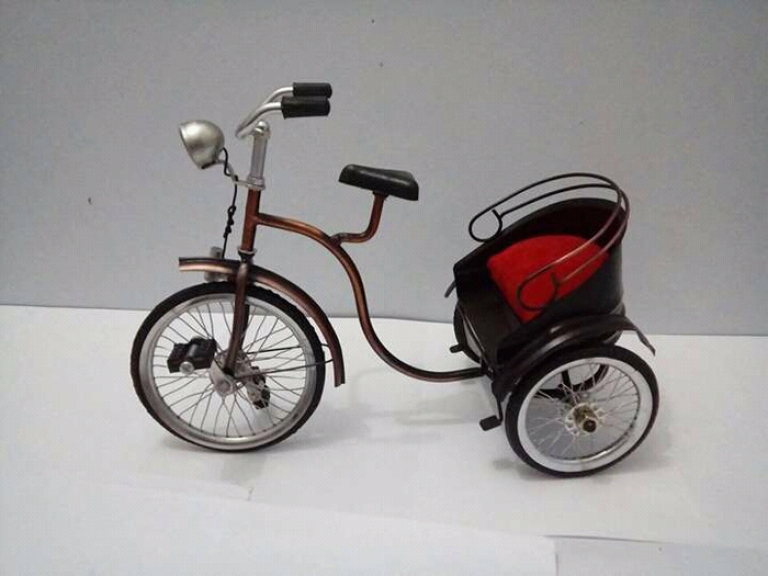 - Nama : miniatur sepeda ontel wanita - Bahan : logam - Ukuran : kurang lebih 30 x 16 x 18 - Harga : Rp. 89.000,- - Detail : bentuk kurang lebih seperti di foto dan terlihat seperti aslinya. sangat bagus dan unik. s roda dapat berputar s pedal dapat dikayuh s setandar samping dan dua dapat dipakai s setang dapat dibelokkan - Fungsi : Koleksi pribadi untuk di pajang di kamar, RT, dsb. atau untuk souvenir acara ataupun hadiah kepada teman, sahabat, ataupun kolega anda.