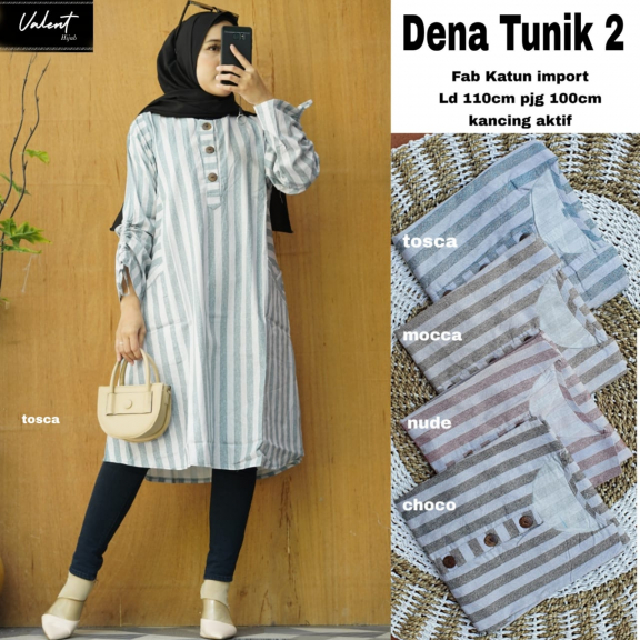 denna tunik bahan katun import ld:110cm pj 100cm kancing aktif