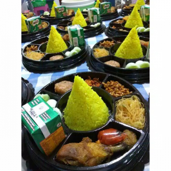 Tumpeng mini adalah salah satu Menu andalan kami, cocok untuk acara Ultah, Syukuran, Arisan. Di dalam paket terdiri dari 8 olahan yaitu Tumpeng mini, Ayam goreng crispy / tepung, Tempe oreg, bihun/mie goreng, lalapan, perkedel/nugget/croket, minuman kemasan Milo/Teh kotak/buavita