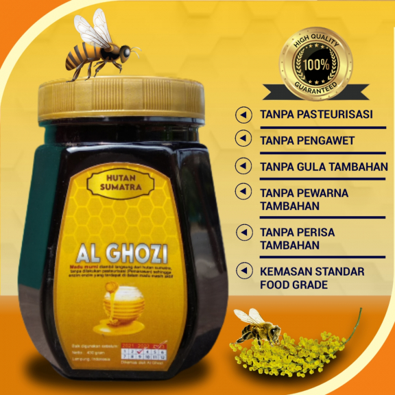 Madu Hutan Al Ghozi adalah madu murni dipanen dari hutan akasia Jambi. Dipanen secara higienis dan menerapkan panen lestari. Ukuran 430gr Sudah menggunakan botol food grade