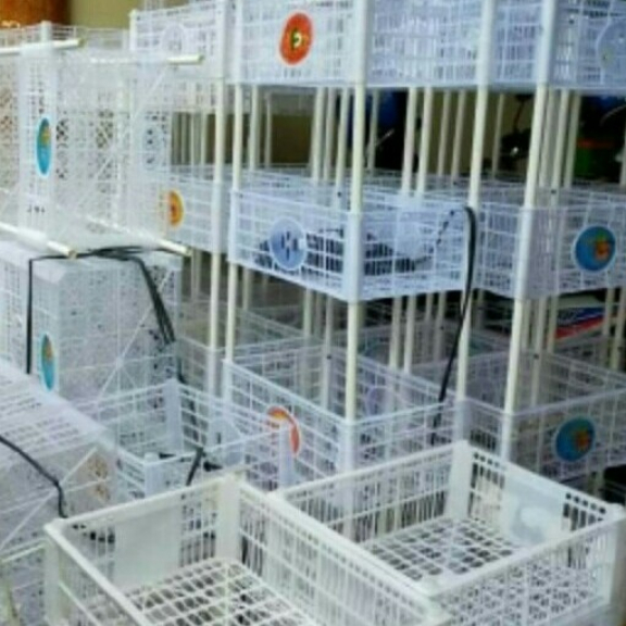 Rak terbuat dari bekas keranjang buah buahan dengan kaki kakinya atau tiangnya dari pipa PVC dengan garansi kualitas dan tahan lama.