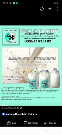 Susu Sapi Murni sudah matang dapat langsung diminum
