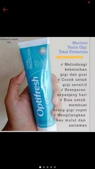 Optifresh System 8 Total Protection Toothpaste System 8 Total Protection dengan Active Protect Complex membantu memberikan perlindungan 12 jam terhadap masalah gigi umum, seperti membantu melindungi gigi dari plak, karang gigi, dan gigi berlubang.s Diformulasikan dengan fluoride untuk membantu merawat kekuatan gigi dan aroma mint untuk nafas terasa segar lebih lama. Optifresh System 8 Extreme Fresh Toothpaste System 8 Extreme Fresh dengan Active Protect Complex, teruji secara klinis memberikan perlindungan 12 jam, untuk membantu menjaga kesehatan gigi dan memberikan rasa segar yang lebih lama. Diformulasikan dengan fluoride untuk merawat kekuatan gigi, dan rasa mint untuk napas segar.
