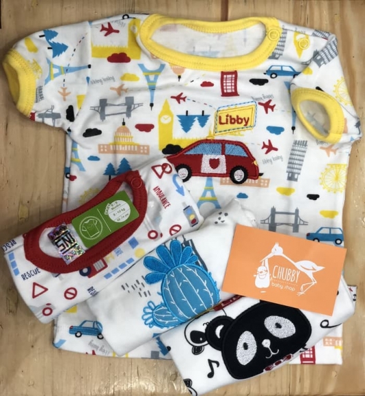 Libby Baby Short Sleeves Tees (4pcs) Size: 6-9m (8-10kg) LD: 25cm, PB: 29cm Keunggulan Tees : 1) Bebas dan aman dari bahan kimia berbahaya 2) Terbuat dari bahan Special Cotton yang lembut 3) Anti alergi dan Anti Bakteri, mudah menyerap keringat 4) Terdapat Bordir pada bagian depan baju 5) menggunakan kancing jepret yang bebas nikel dan memudahkan pemakaian untuk bayi