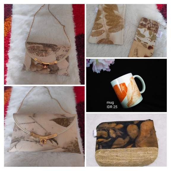 clouth ecoprint dari bahan alam dr daun genitri,jambu biji dan daun cosmos disertai dengan rantai