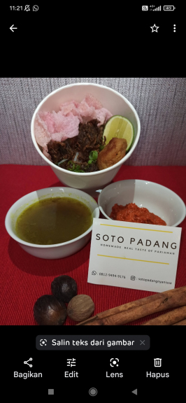 Soto Padang kuliner khas Sumatera Barat harga 1 porsi Rp.20.000/ porsi lengkap dengan isian paru ,daging sapi, dan perkedel