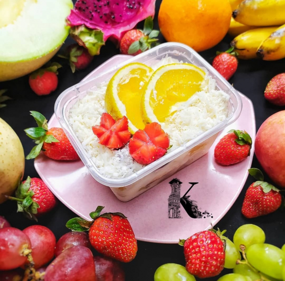 Terdiri dari buah buahan segar (tanpa semangka dan pepaya), disajikan dengan saus salad yang nikmat dengan pilihan topping keju atau coklat