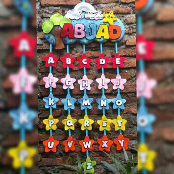 Gantungan huruf adalah salah satu media edukasi anak untuk mengenal huruf. Terbuat dari kain flanel warna warni untuk stimulus anak.