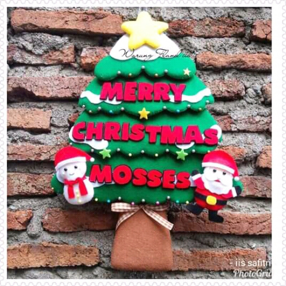 Gantungan pintu dsn dinding berbentuk Pohon natal terbuat dari kain flanel.