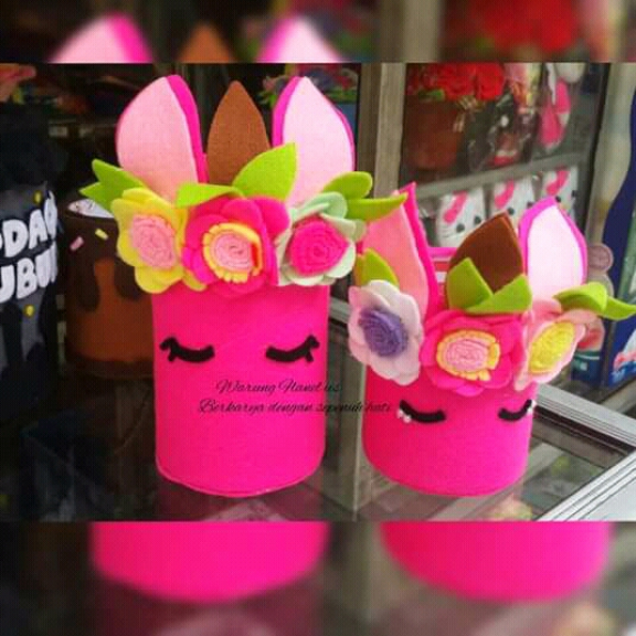 Terbuat dari gulungan ex lakban dihias dengan kain flanel warna warni