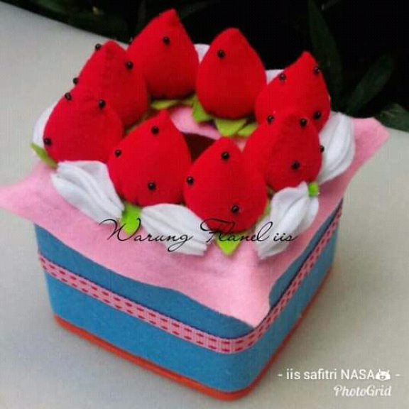kotak tisu plastik kecil dihias dengan kain flanel.