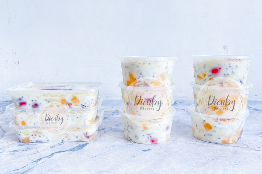 Salad buah dengan isian buah segar dan dressing yang creamy asam manis