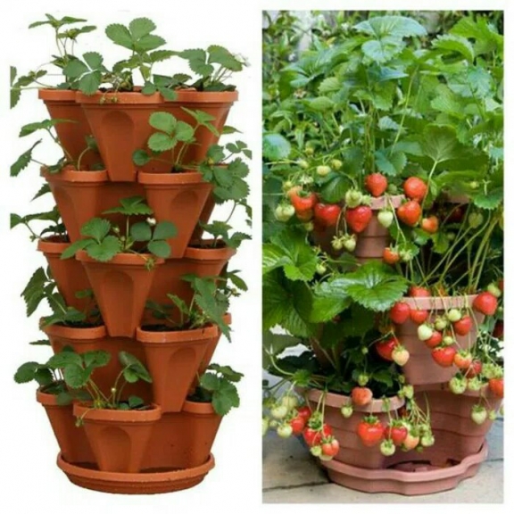 Stacking pot atau pot susun 5 ini dilengkapi dengan rantai dan tatakan. Masing2 pot terdiri dari 3 kembangan, jadi dalam satu set ada 15 lubang tanam. bisa digantung maupun diletakan dilantai.
