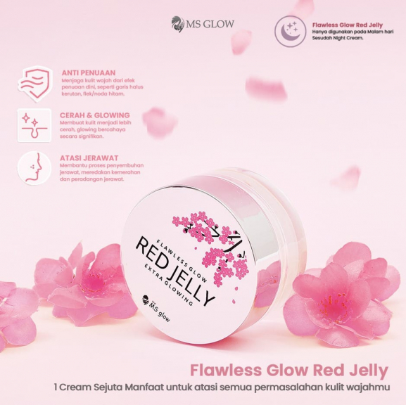 Kandungan utama yang terdapat pada Red Jelly seperti ekstra sakura, seboclear, liftonin express, glutathione, dan collagen yang mempu mengatasi jerawat, bekas jerawat, mengencangkan, melembabkan, menghaluskan, sebagai anti penuaan, dan mengurangi flek pada wajah, serta memaksimalkan kerja cream malam.